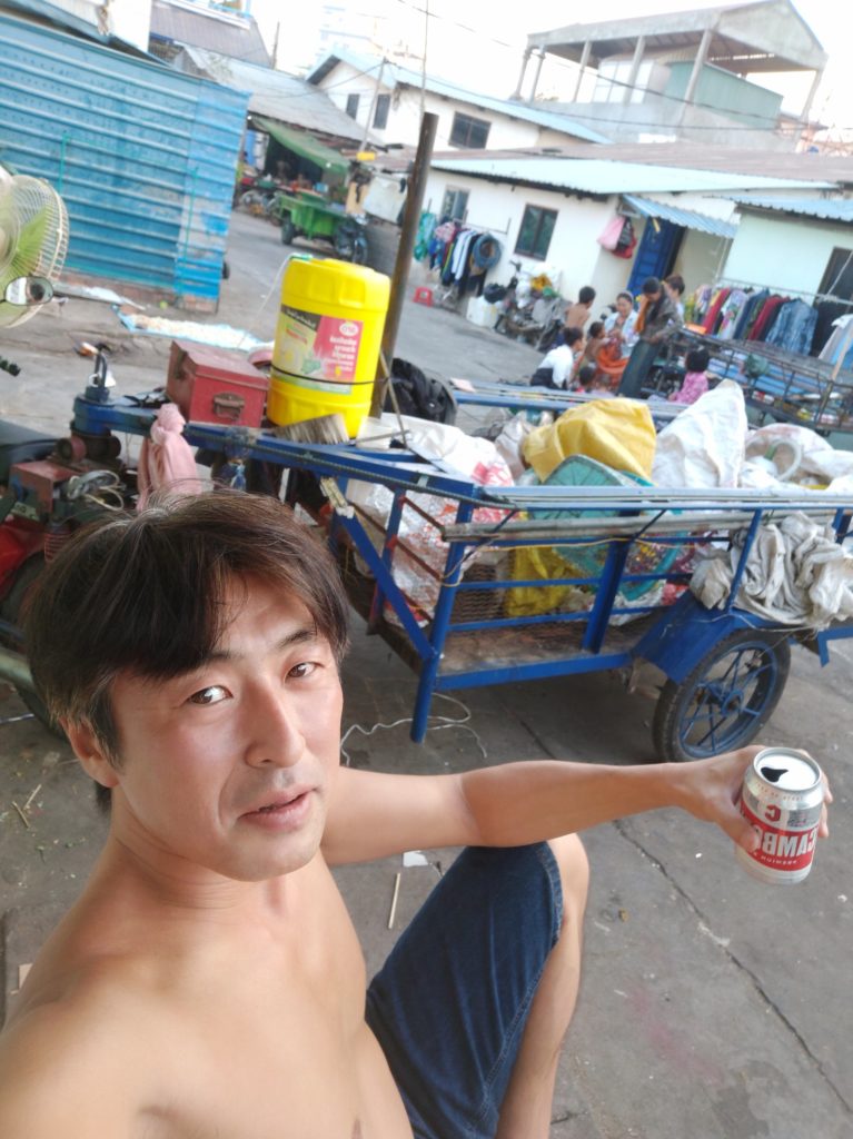 で、一段落ついたのでサウナでも行きたい所ですが、コロ助のせいで外出もままならないので、事務所の前で一人飲み。