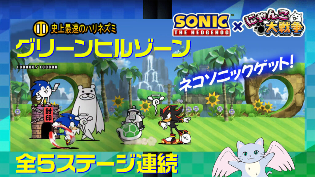 ソニックコラボ グリーンヒルゾーン 全5ステージ連続 ネコソニックゲット!(にゃんこ大戦争プレイ日記602)