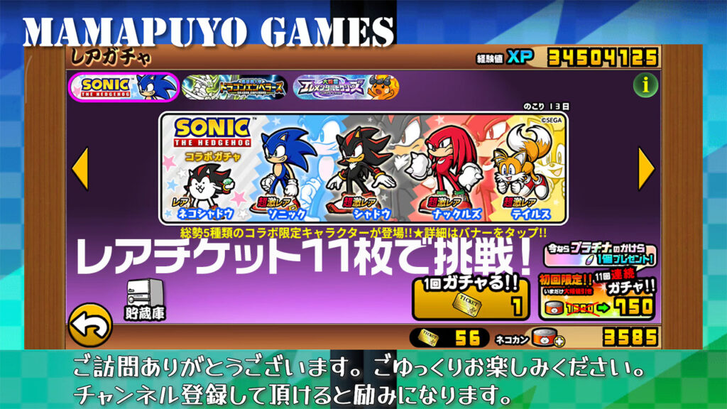 「ソニック・ザ・ヘッジホッグ」コラボガチャ レアチケット11枚で挑戦!(にゃんこ大戦争プレイ日記600)