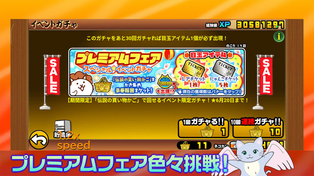 プレミアムフェア色々挑戦!(ぷちにゃんこスクラッチ→特売バトルロード→プレミアムフェアスペシャルイベントガチャ→【限定】ご来店プレゼント!)(にゃんこ大戦争プレイ日記604)