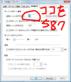 アカウントの送信サーバポート番号を「587」にすればOK。