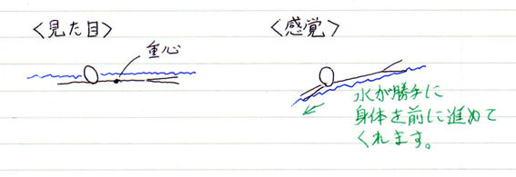 しいて言えば、2ビートスイムでもキックの力に頼らずに水平姿勢を
