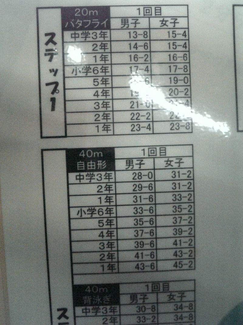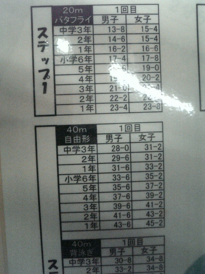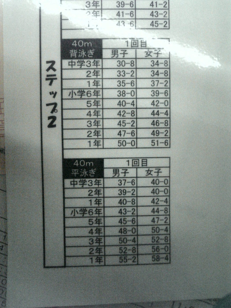 第二の関門、背泳ぎ40mを35.6秒と、平泳ぎ40mを40.8秒