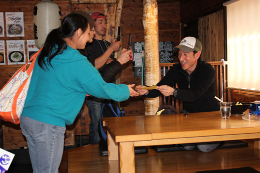 10分の中継が終了した後、ギャラリーがサインを求め店内は大行列