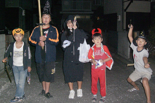番外編。1年半前のハロウィン。近所の友達と一緒に仮装して、あめ玉配ってました。