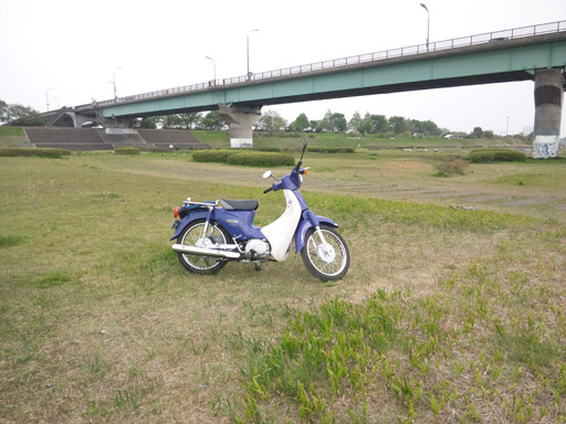 ぶんのカブと河原から見た座架依橋。ぶん一家はたまにここでバーベキューをしています。