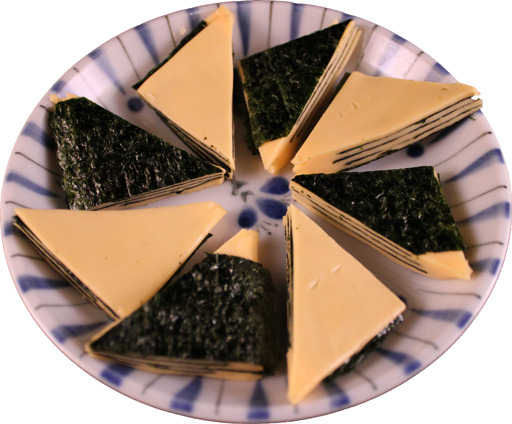 ぶんの好物「ノリチーズ」。チェダーチーズと味ノリを幾重にも重ね合わせた