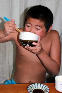 一心不乱に食べてるぶん長男。今日は5杯飯。
