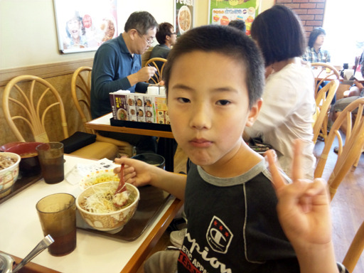 午後一からH君を迎えに行き、そのままぶん長男を拾いに中学校へ行って、そのまま食事へ。