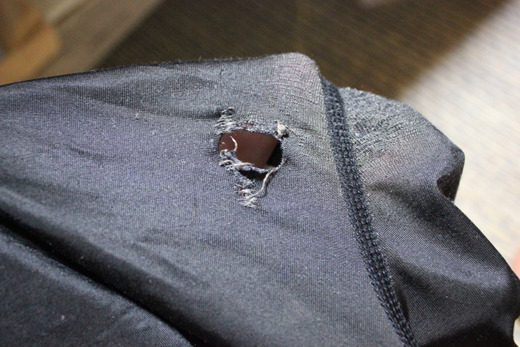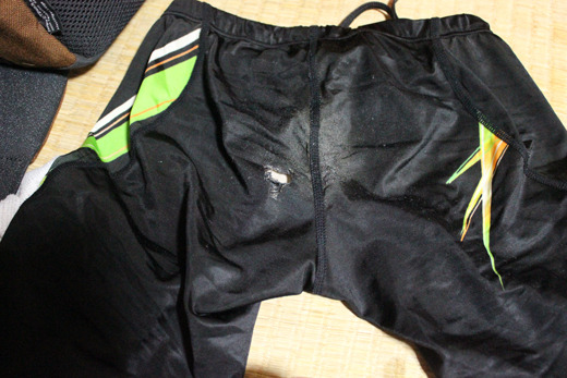 4月にぶん両親がプレゼントしてくれた水着。お尻に1センチ強の穴が開いてしまいました。既にもう一着水着は購入してあるので問題ないのですが、良くこんなになるまで使ったものだと。。。次は練習用の生地が強い水着も購入しないとダメですね。