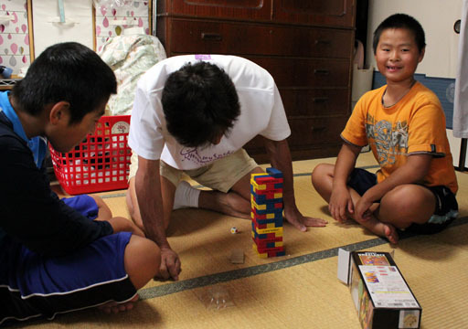 昼食後にぶん親父とジェンガをやって遊んでいたぶん長男と次男。