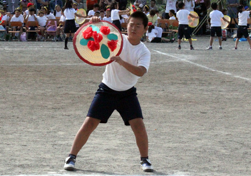小学校に着いた時、丁度ぶん次男の「花笠音頭」をやってました。