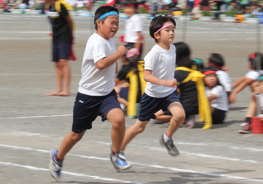 徒競走の様子。4位でした。先日もて耐に行った時教わった流し撮りを実践してみました。