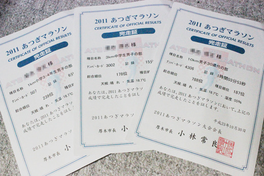 ゴール後に貰った完走証。一緒にTシャツとポカリスエットを貰えました。