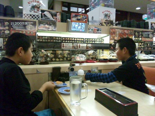 行く途中、ぶん次男がB’sの「ultra soul」が聴きたいと言い出したので、レンタルCD屋に寄り道。その後くら寿司へ行ってきました。