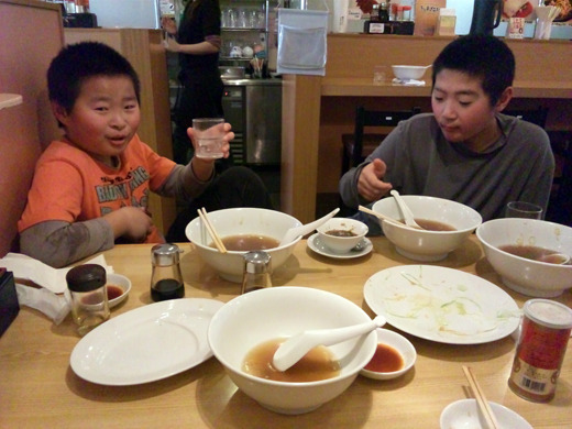 大盛り3杯+おかわり1杯+から揚げ1皿+餃子1皿。二人とも良く食べたものです。
