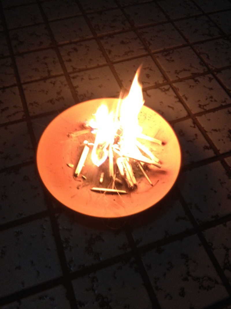 今夜は風が強く、付けては消え、付けては消えの繰り返し。なかなか燃え尽きない藁にお袋が、「帰りたくないって言ってる」とポツリ。ついにスッと燃え上がった炎はとても物悲しく、暫く全員で見入りました。