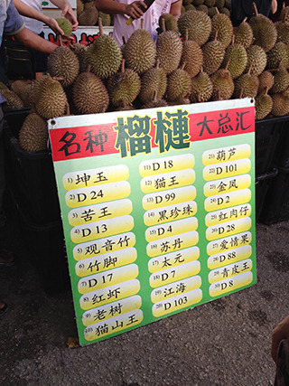 マレーシアのドリアンセンターにて。ドリアンにはこんなにランクがあります。