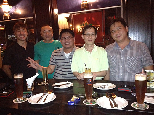 Tシャツ制作にかかわるメンバーとバー&レストランで食事。マレーシアはイスラムの国なのでお酒は高いです。それでも全員で500RM(18,300円)のお会計でした。