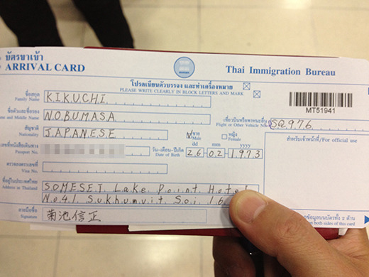 タイの入国カード。タイも必要なんですね、初めて知りました。