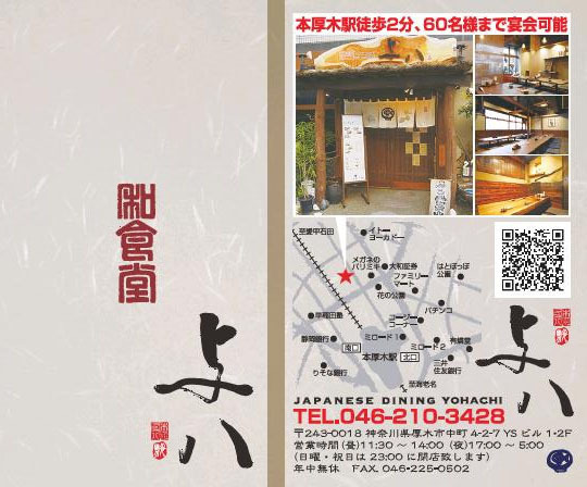 ショップカードは折り位置をあえてずらし、表2の左側にある店名が開いた時も閉じた時も見えるようにしました。表紙と中面の基調色を変えているので、折られた状態だと黒と和紙風アイボリーのコントラストがインパクトを与えます。