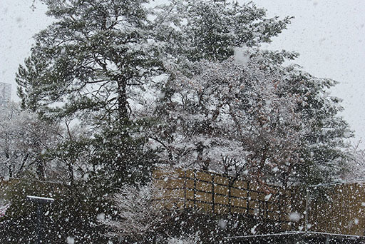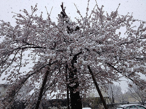 4/20、23:00横浜発の深夜バスに乗って出発。山形駅には翌朝7:00に到着。奥羽本線で天童へ移動し、午前中一杯は雪の天童市内をぶらぶらと徒歩で観光&日帰り温泉でゆっくり。「雪中桜」なんて滅多に見られませんからね、凄く綺麗でラッキーでした!!