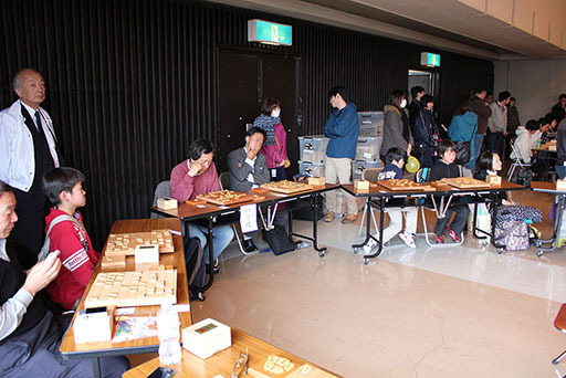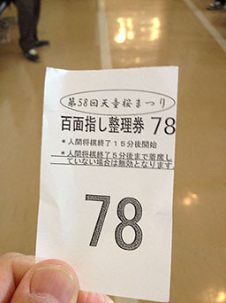 4/21は山形全域が雪となってしまい、市民文化会館内で行われる事になりました。11:30頃に会場へ移動。早めに行って人間将棋後の「百面指し」イベントに申し込むつもりだったのですが、なんと既に78番目!!危なかった~。