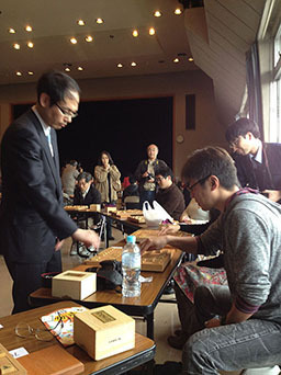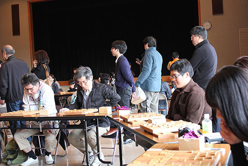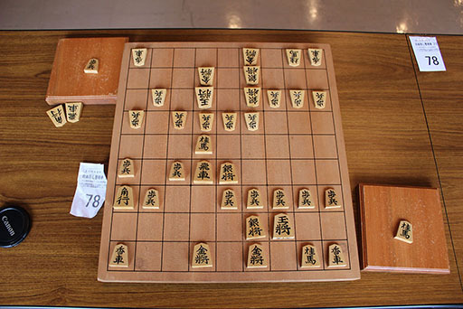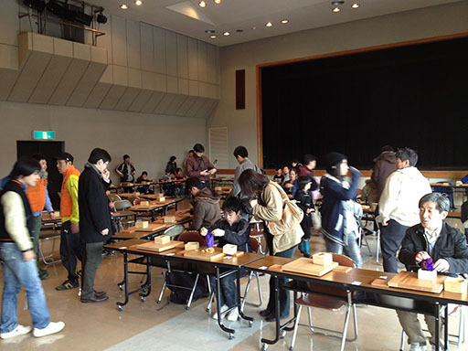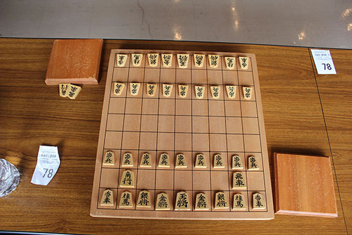 人間将棋後は急いで百面指し(指導対局)会場へ。大人から子供まで多くの方が参加してました。先生方が来る前に並べておくのが礼儀です。