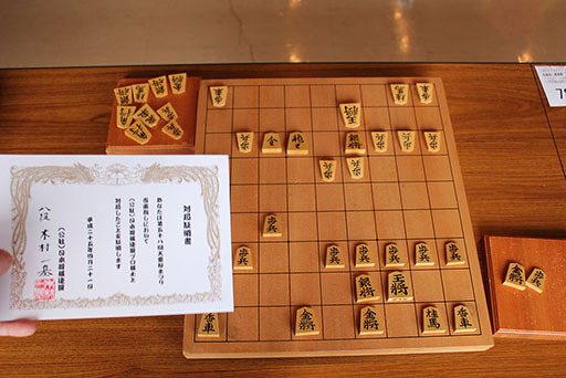 写真4 私の△4三銀打で終了。先手投了図と木村先生との対局証明書