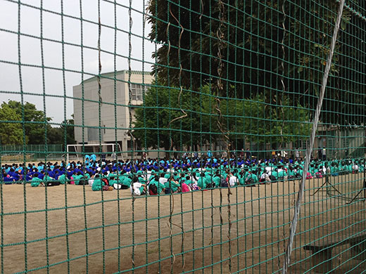 避難訓練。15:00から親のみ引き取り可能で、行かないと17:00まで待機だそうです。