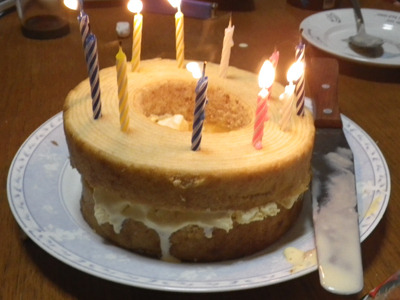 My family’s birthday cake always is made from Baumkuchen & Lady Borden. It is cheap but delicious. My sons love that.