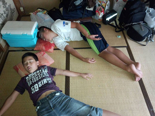 昨日の大会疲れと夜通しの移動の為、全員午前中は熟睡。