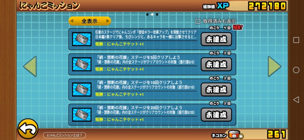 今日は エヴァンゲリオンコラボ ネコカンが貰えるにゃんこミッション 全4ステージ(1.決戦!ヤシマ作戦 二子山第2要塞 2.発進!エヴァンゲリオン 特別非常事態宣言発令中 3.第9の使徒、襲来 アスカが乗ってるんだよ!初級 4.第10の使徒、襲来 最強の拒絶タイプ 上級)を一つに纏めた動画を作成しました。全ステージクリア済みでも合計ネコカン70個手に入るという事でやってみました。動画はコチラ↓良かったら見てください。