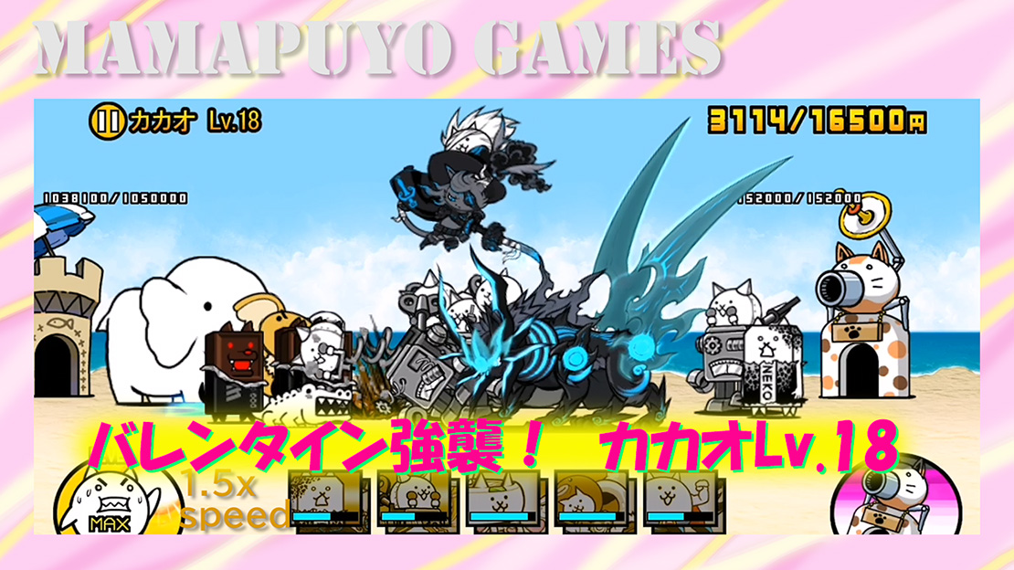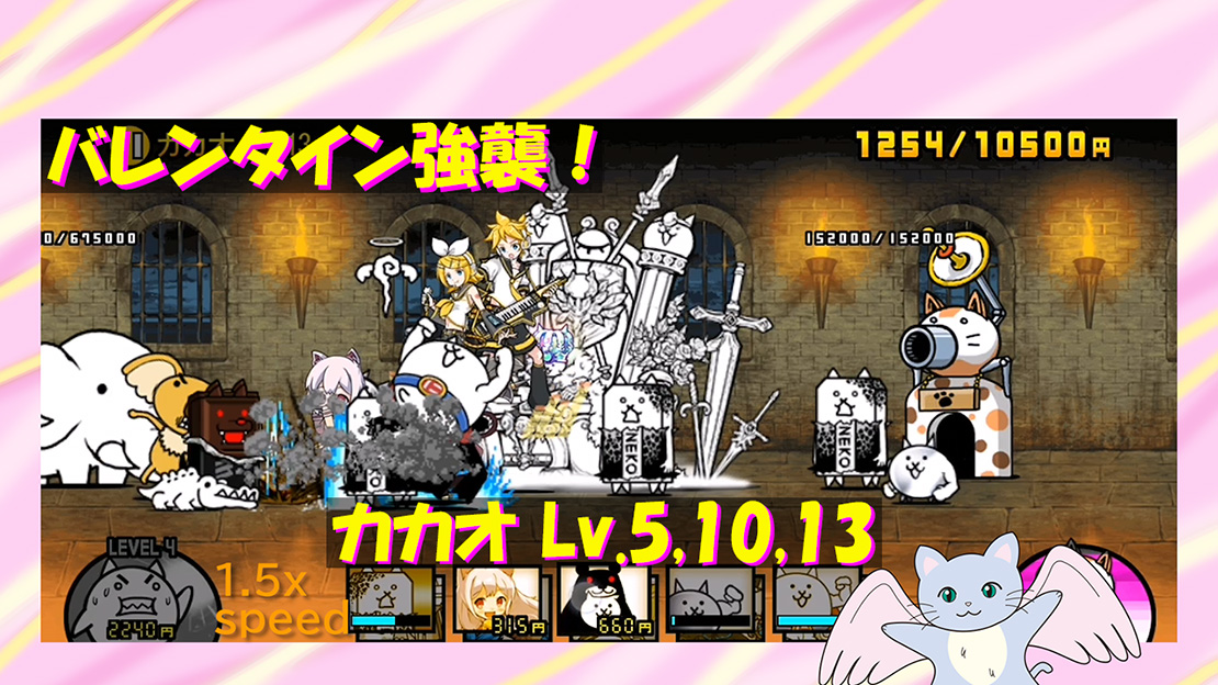 バレンタイン強襲! カカオLv.14 補正前に挑戦!!(にゃんこ大戦争プレイ日記237)