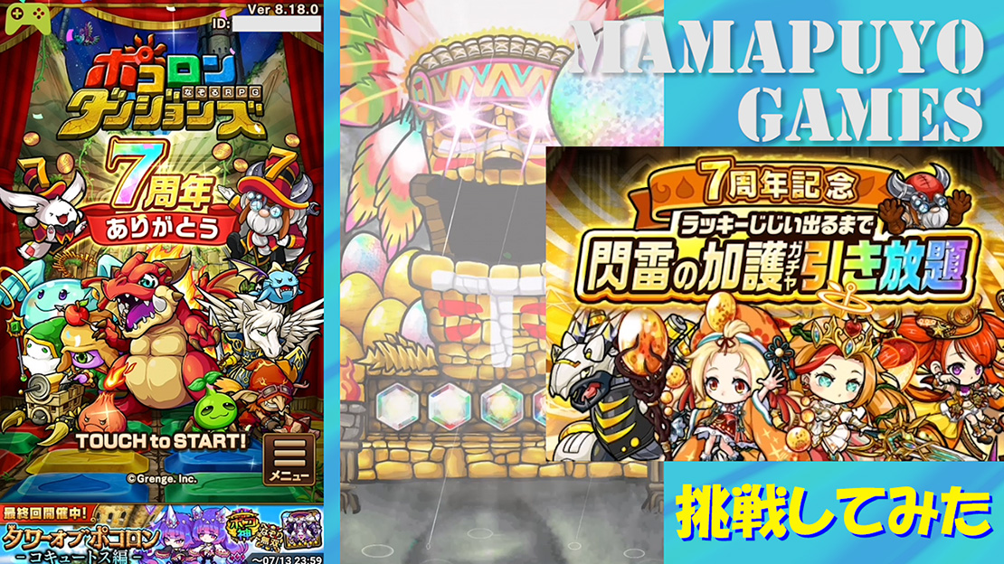 7周年記念 ラッキーじじい出るまで蒼氷の祭典ガチャ引き放題 挑戦してみた(ポコロンダンジョンズプレイ日記28)
