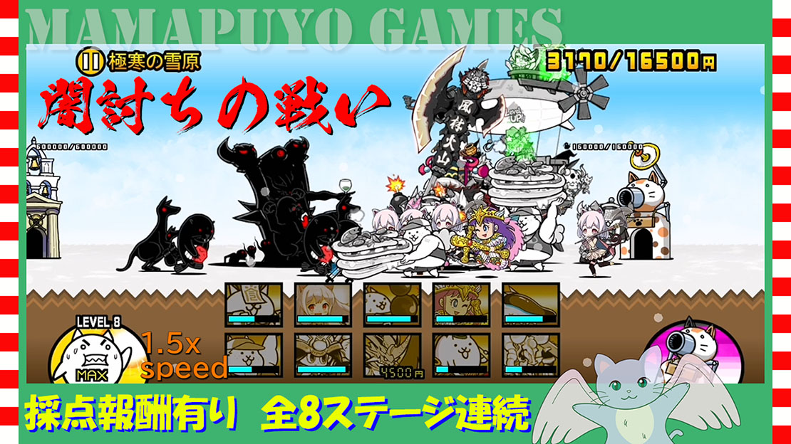1月17日10:59まで開催のことよろにゃ強襲!最終ステージ寅年Lv.10の動画を編集しました。本機は2日にクリア、サブ機は今日やっとクリア出来ました。サブ機は情報収集後のにゃんことメルクCCを使ったものです。動画はコチラ↓良かったら見てください。
