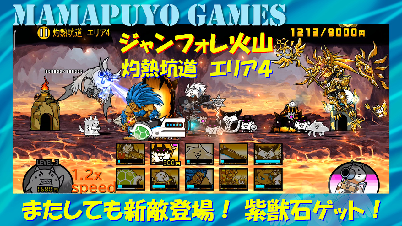 ジャンフォレ火山 灼熱坑道 エリア3 またもや新敵登場! 蒼獣石ゲット!(にゃんこ大戦争プレイ日記410)