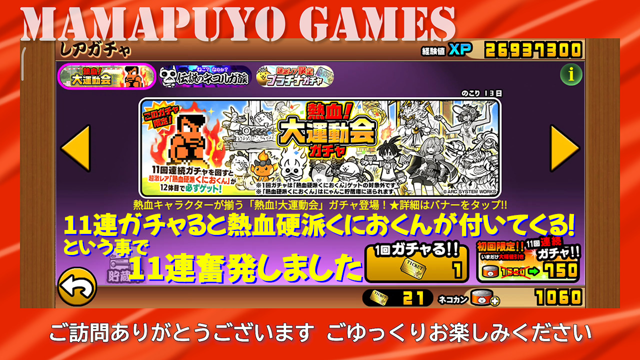 今朝は昨日から編集していたストリートファイターコラボに新登場した ストリートファイター VERY HARD をアップしました。全10ステージを連続で収録しました。ステージクリア報酬がなかなか良かったです。伝説のキャッツアイがいっぱい入手出来ました。最終ステージは金マタタビだったのですがこちらは実よりも種のほうが個人的には有り難かったのですがそこだけちょっと残念です。実は神社で100万XPのお賽銭をしていけばそのうち入手出来るけれど…種は今のところ異界にゃんこ塔の30階でしか入手出来ず、まだ1つしか持っていないので。そう簡単に入手出来ない貴重性が大事なのかな?動画はコチラ↓良かったら見てください。