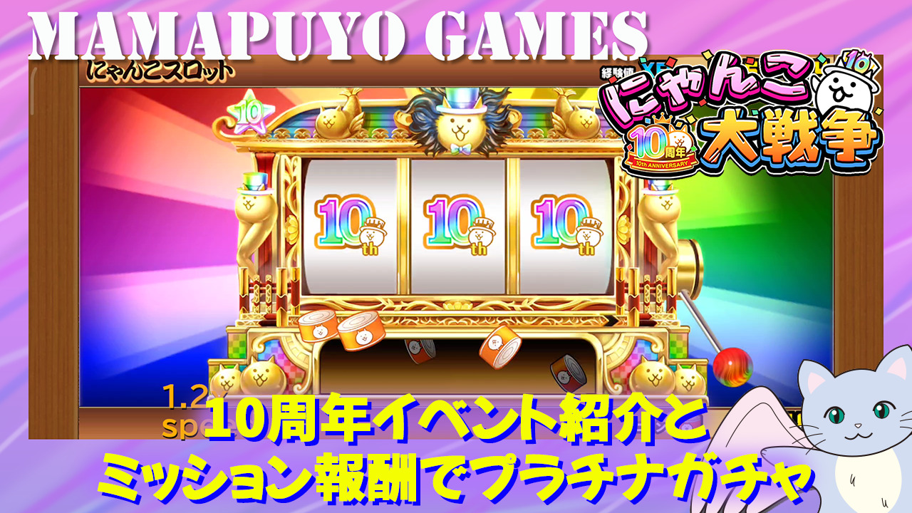 今日は昨日から編集していた 11月強襲!労働Lv.5 とプラチナガチャを一つに纏めた動画をアップしました。ゲームの方は風雲にゃんこ塔と異界にゃんこ塔やギガガガ強襲などが開催中。アイコンが10周年マークに変わり、10周年告知動画もアップされましたが、イベントは11月後半開始だと思います。恐らくまたスロットでネコカン配布企画等、新しく始める方や復帰勢には良いタイミングになるんじゃないでしょうか。本日の動画はコチラ↓良かったら見てください。