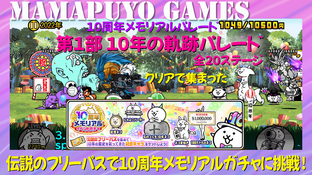10周年メモリアルパレード 第2部 敵軍団行進 全11ステージ連続(にゃんこ大戦争プレイ日記470)