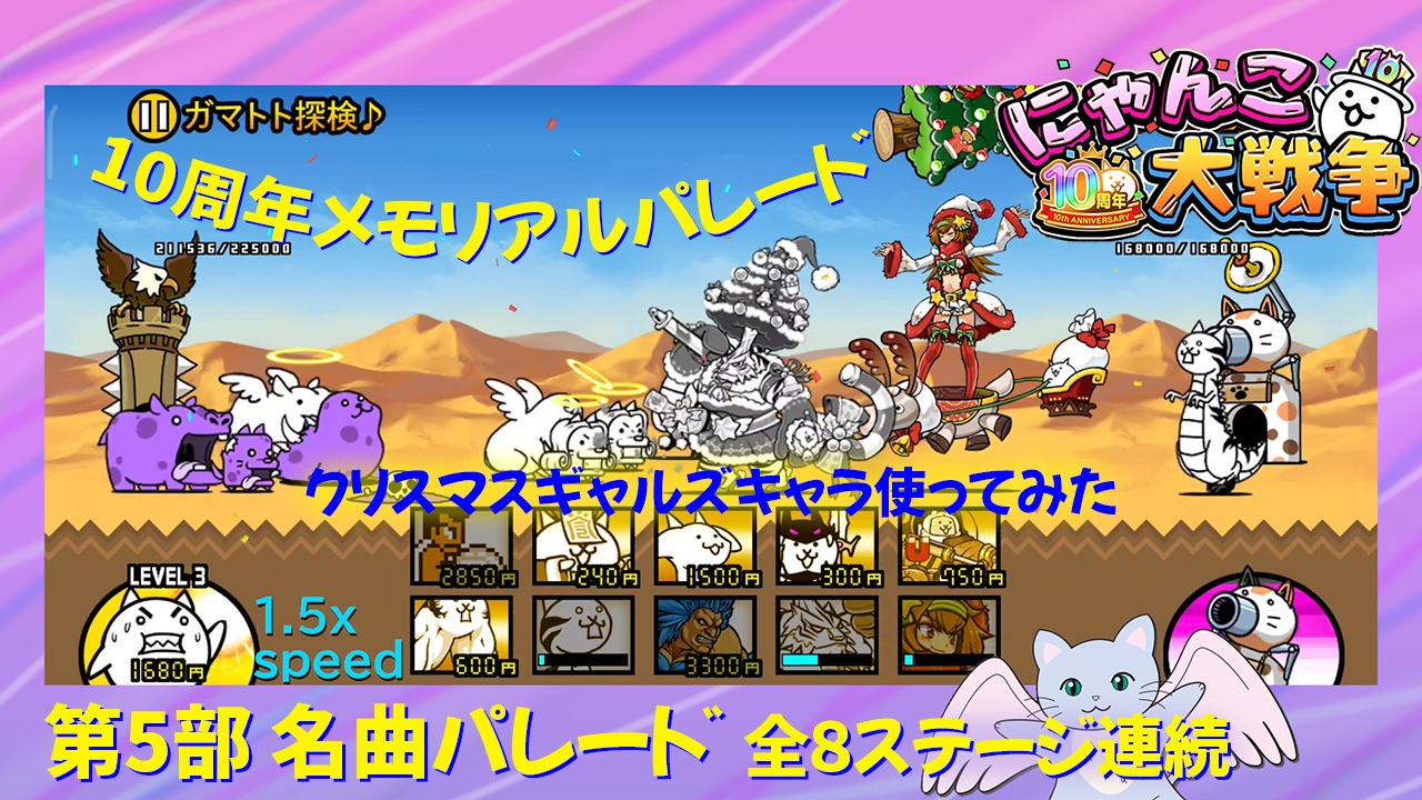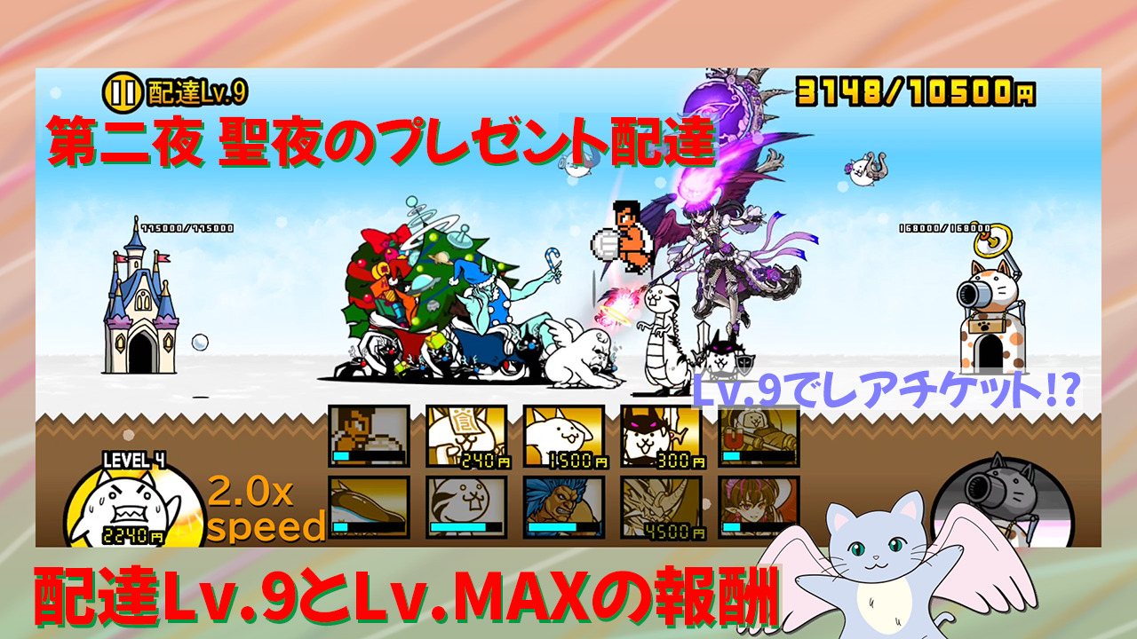 第一夜 働くニャンタクロース 全5ステージ ネコのプレゼント入手と進化(サブ垢) トナカイ娘テルンζ使ってみた(にゃんこ大戦争プレイ日記476)