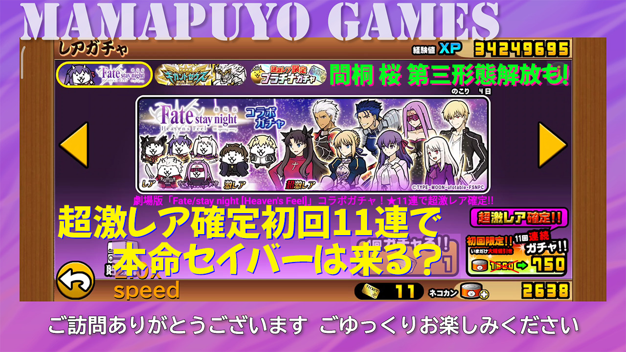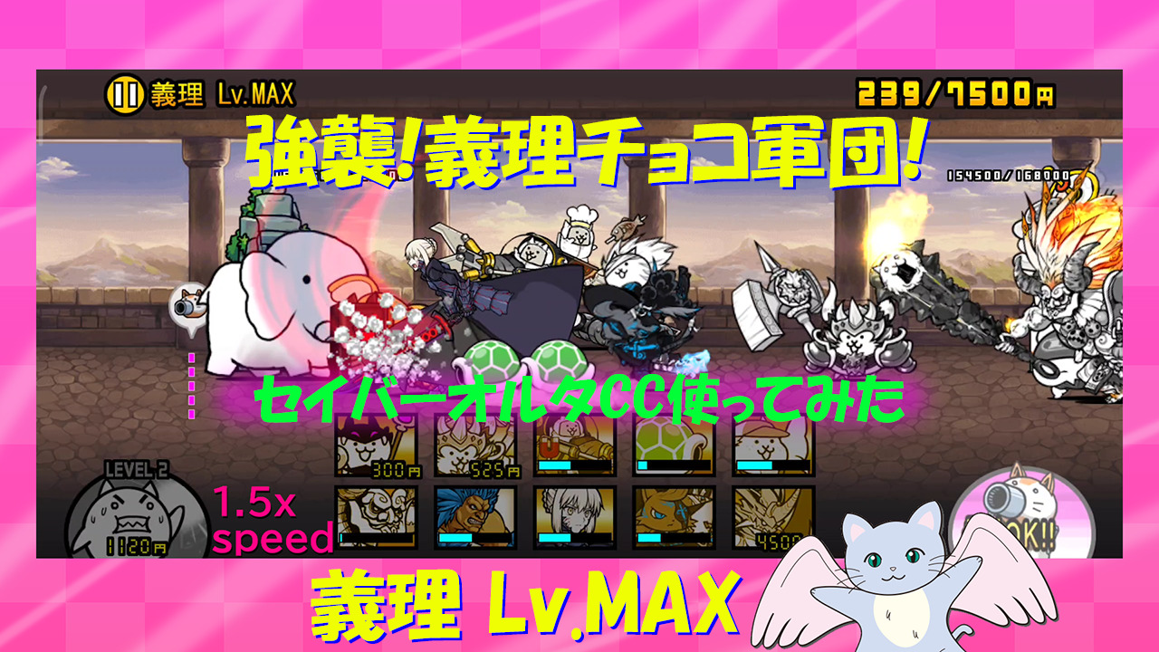 おはようございます。Fateコラボも残り日数僅かのラストスパートです。やっと 超激闘!セイバーオルタ襲来! 影に落ちた騎士王 超上級・極ムズ の編集が終わりました。このステージはネコセイバー第3形態が入手出来ます。次回開催が来るのかどうか分かりませんが記念に残しておきます。動画はコチラ↓良かったら見てください。