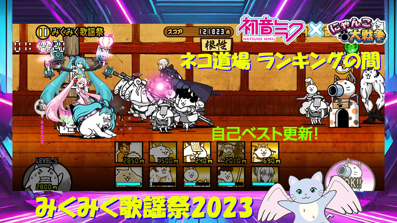 初音ミクコラボ 新登場!週末ライブDAY1 全3ステージ連続、極悪のトリ降臨 アポカリプス 超極ムズ 洗脳されしネコノトリ第3形態(進化権利)入手(にゃんこ大戦争プレイ日記522)