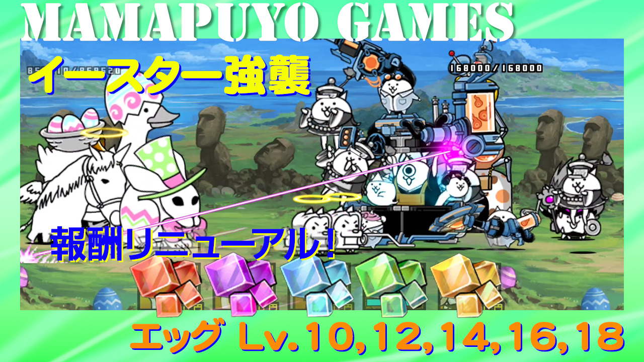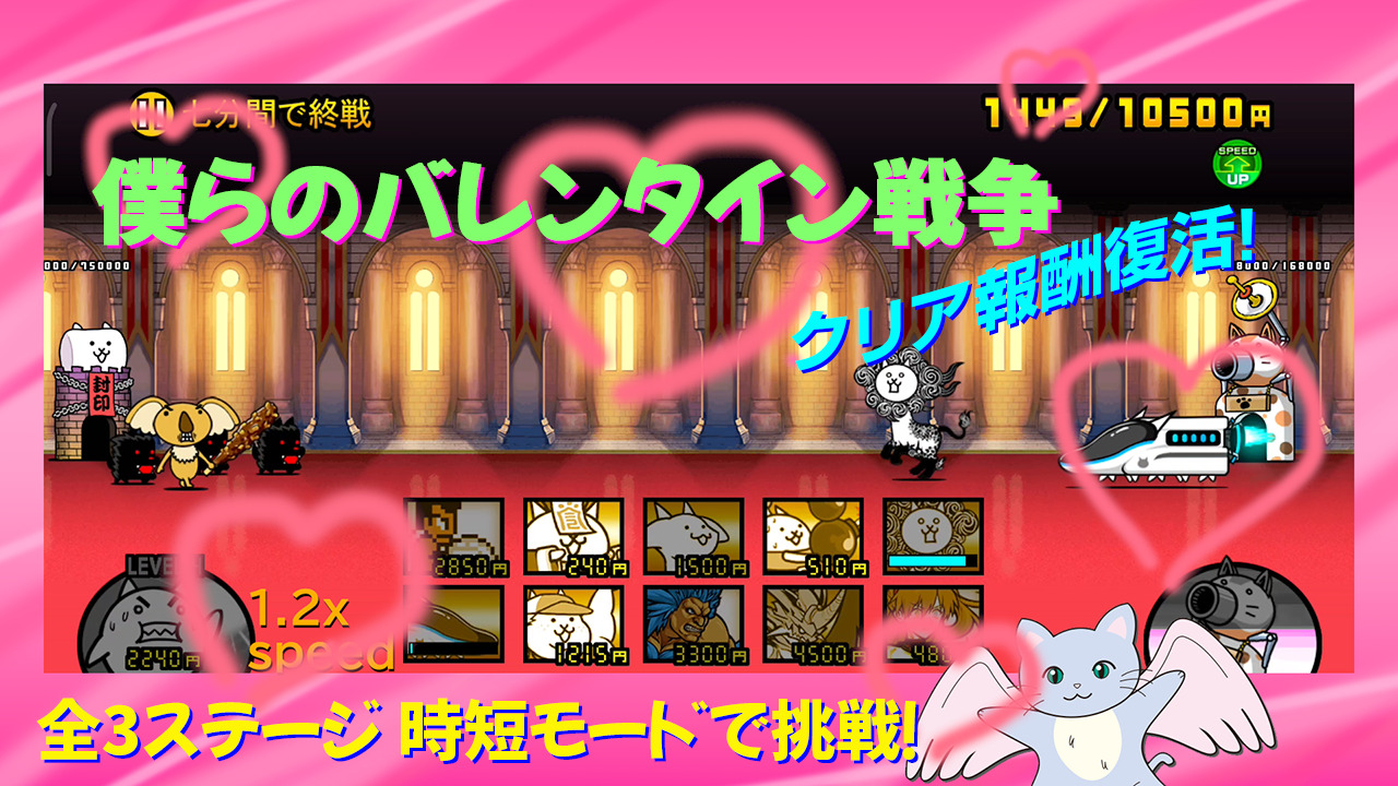 2月22日11:00~2月29日10:59まで開催のネコたちの大逆襲の編集が終わりました。前回はネコたちの逆襲だったのがリニューアルされました。敵キャラ構成の変わるポイントステージと最終ステージをピックアップしました(全15ステージ)。このイベントでは殺意のネコと殺意のタンクネコが入手可能です(残念ながら新登場の殺意のバトルネコは入手出来ないみたいですね)。本日の動画はコチラ↓良かったら見てください。