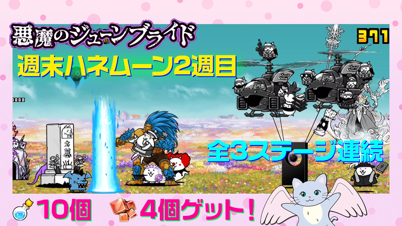 悪魔のジューンブライド 13日は何曜日? 新難易度解放 冠3 全5ステージ連続(にゃんこ大戦争プレイ日記563)