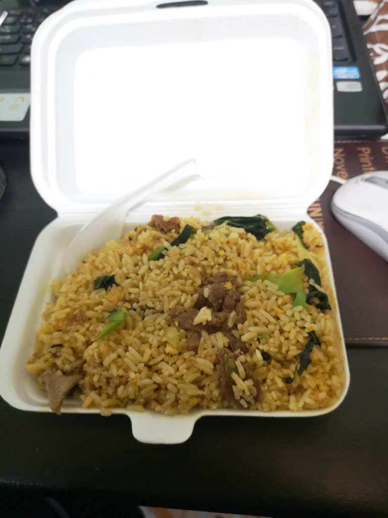 អាហារពេលល្ងាចថ្ងៃនេះគឺបាយឆាសាច់គោ ឆ្ញាញ់ណាស់។ មួយចានតែ៥០០រៀលប៉ុណ្ណោះ។