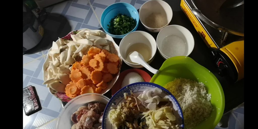 អាហារពេលល្ងាច គឺបបរសាំចូក។ធ្វេីដោយដៃផ្ទាល់ ឆ្ញាញ់ណាស់។