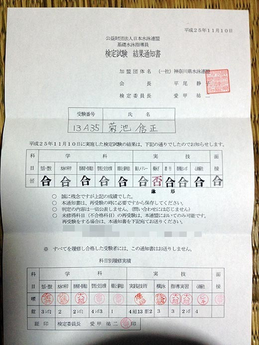 This is BUN.I took a swimming licence exam at 11/10.So I got the result.I'm sorr ...