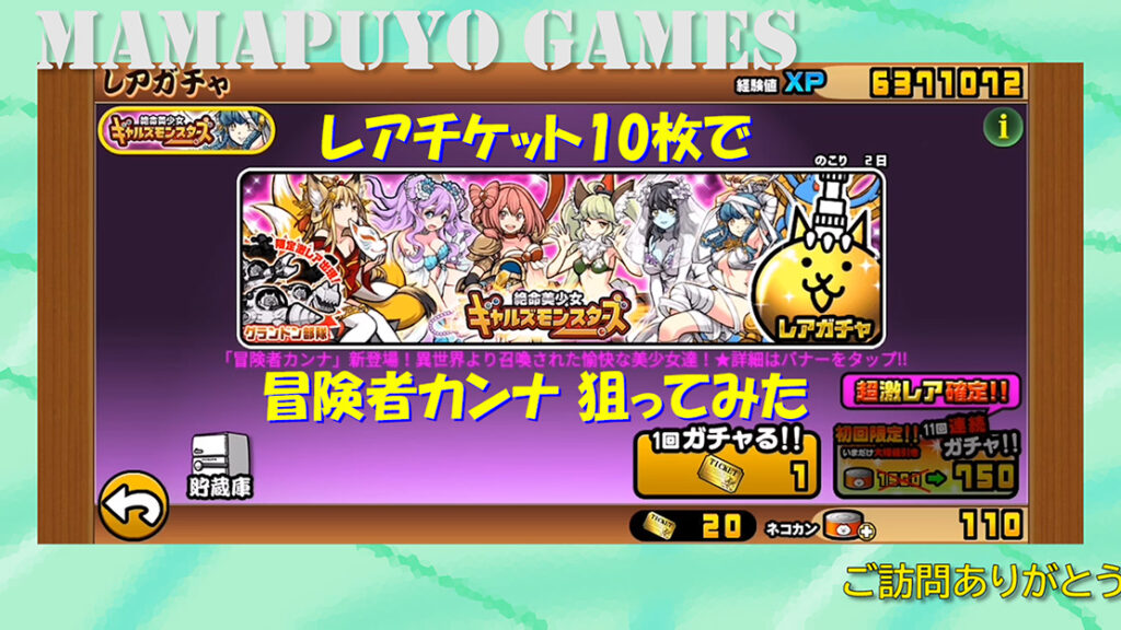 ギャルズモンスターズ レアチケット10枚で 冒険者カンナ 狙ってみた(にゃんこ大戦争プレイ日記255)