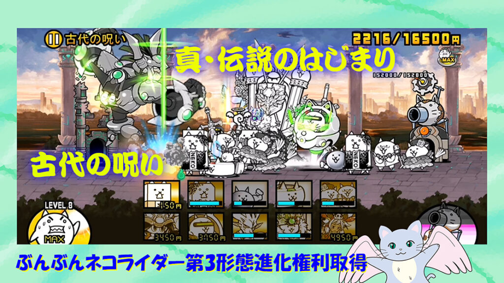 真・伝説のはじまり 古代の呪い ぶんぶんネコライダー第3形態進化権利取得(にゃんこ大戦争プレイ日記256)